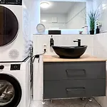 In Leipzig Stadtzentrum - Ruhiges City Apartment Mit Kostenfreiem Stellplatz Bis 1,50M Fahrzeughoehe zijn een apart toilet en een douche voorzien om uw comfort te vergroten. Daarnaast vindt u er een droger en handdoeken.